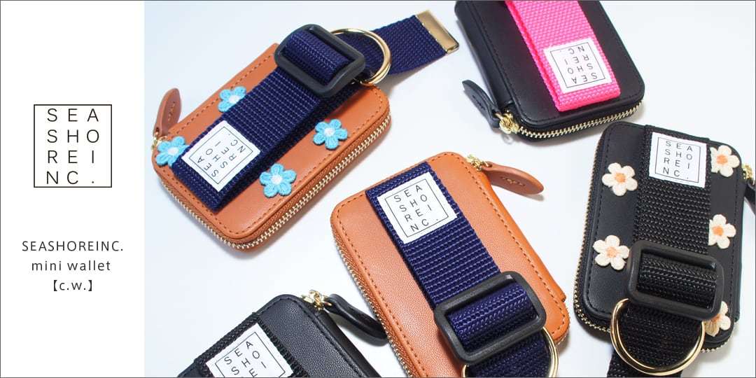 seashoreinc. for all smartphone【C.W】は、全てのスマートフォン対応のマグネットタイプのミニウォレットです。 こちらのCWシリーズは、カードや紙幣、小銭、鍵などちょっとしたものが収納出来るミニウォレットとなっています。 ・MagSafe対応ケースはもちろん、付属の粘着テープ式磁気リングを使用すれば、あらゆるスマートフォンでご使用いただけます。 ・カードは最大4~5枚程度収納可能。 ・伸縮性の高い多目的ポケットを搭載。お札やコイン、鍵などの収納にも便利です。 ・ファスナー仕様でしっかりと閉じられるため安心。ポケット外のスペースにも小物をすっきり収納できます。 ・ホールドバンド付きで、スマートフォンのホールド力が向上。片手操作もより安定します。 高い機能性や利便性はもちろん、ファッションアイテムとしても身に着けていて楽しい、唯一無二のユニークな「seashoreinc.」のアイテムは、すべて就労支援施設BANZAI WORKSを母体に、様々な個性を持つスタッフの手により、国内の工房で製作されています。 付属品 : 磁気リング 生産国 : 日本 【ご注意ください】 磁気リングは必ずご使用ください。使用されないと十分な吸着力が発揮されません。 【磁気リングの貼り付けについて】 磁気リングは、ファブリック、レザー、ポリカーボネートや曲面・凹凸がある素材には貼り付けできません。 磁気リングは一度外すと十分な接着力を発揮しませんのでご注意ください。 磁気リングを付けたままMagSafeデバイスもご使用いただけますが必ず充電ポイントなどの場所決めを行ってください。 磁気リングの接着テープは、剥がす場合に跡残りの少ないものを使用しています。 【ご使用方法について】 強力なマグネットを使用しておりますがベルト部分をお持ちになって振ると外れる場合がございますので十分にご注意ください。 ベルトはあくまでも日常使いで手を通すことを目的とし鞄の持ち手のような効果はありません。絶対にベルトを持って振らないでください。 本体を外す際は横にスライドして外してください。強い力で縦に引っ張ると本体から磁石や磁気リングの接着テープが外れる場合がございます。 ストラップ等を使用する場合、直接Dカンには付けないでください。 【磁気の影響について】 磁力の影響でカードに磁気不良が起こる場合がございますがスマートフォンからも磁力は発生しているため当店では責任を負いかねます事をご了承ください。 切符や駐車券など磁気で印字する紙媒体は影響を受けやすいですご注意ください。 ※本製品と取り付けた機器(データを含む)の破損や損傷、落下、人的障害についての一切の責任を負いかねますのでご了承下さい。 ※モニター環境等により実際の色と異なって見える場合がありますので、予めご了承下さい。 ※素材の特性上、細かな傷やしわ、色ムラなどの個体差がございます。