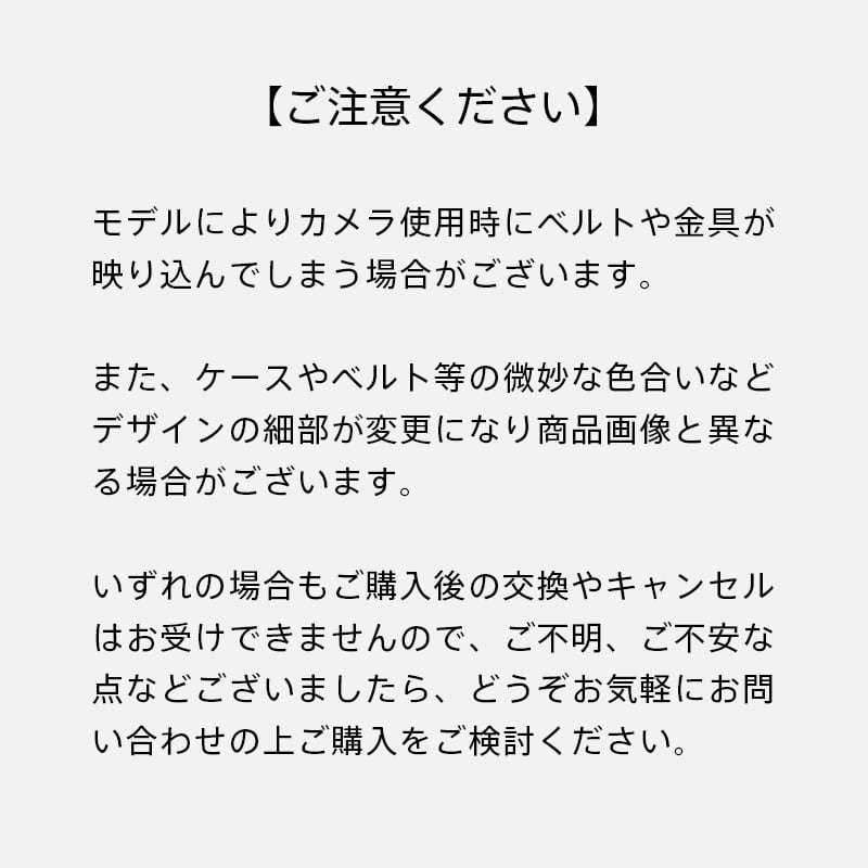 ・カメラ使用時にベルトやDカン(金具)が映り込む場合があります。